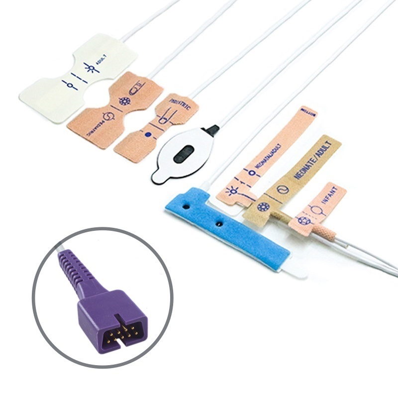 These are SpO2 sensors disposable with 9 pin male connector, high-quality, designed to measure peripheral oxygen saturation (SpO₂) and pulse rate in patients. It is widely used in hospitals, clinics, home care, and emergency settings due to its convenience, infection control benefits, and ease of application.