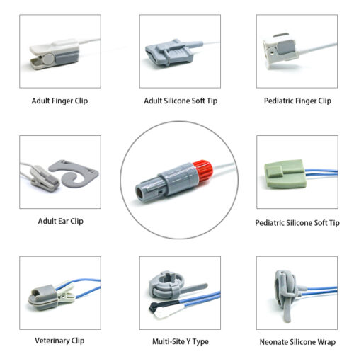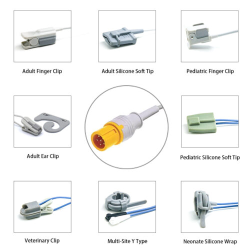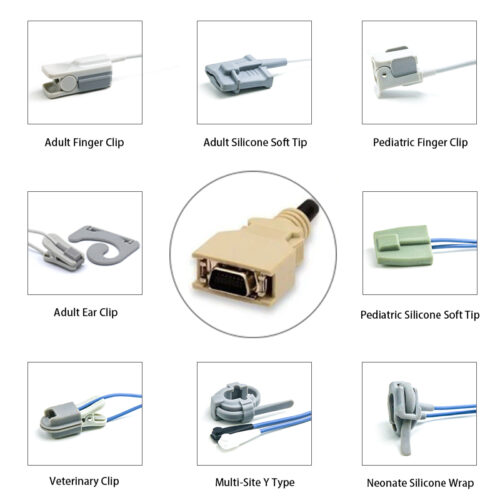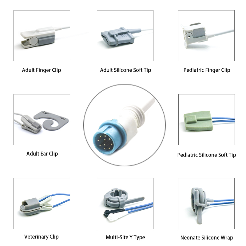 These are SpO2 sensors reusable with 10 pin male connector, high-quality, durable, designed to provide reliable and accurate blood oxygen saturation (SpO2) and pulse rate monitoring, which are suitable for patients like adult, pediatric, neonates.