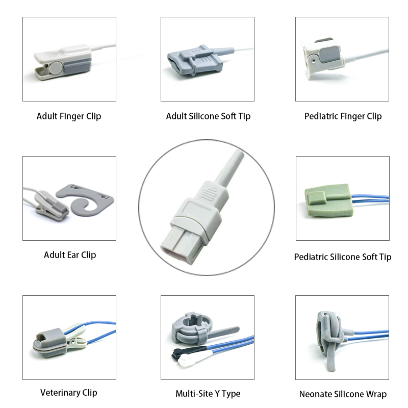 These are SpO2 sensors reusable with 10 pin connector, high-quality, durable, designed to provide reliable and accurate blood oxygen saturation (SpO2) and pulse rate monitoring, which are suitable for patients like adult, pediatric, neonates.