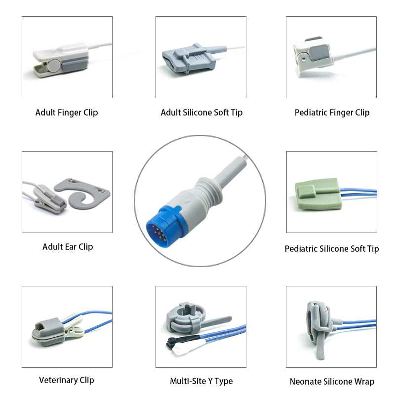 These are SpO2 sensors reusable with 12 pin male connector, high-quality, durable, designed to provide reliable and accurate blood oxygen saturation (SpO2) and pulse rate monitoring, which are suitable for patients like adult, pediatric, neonates.