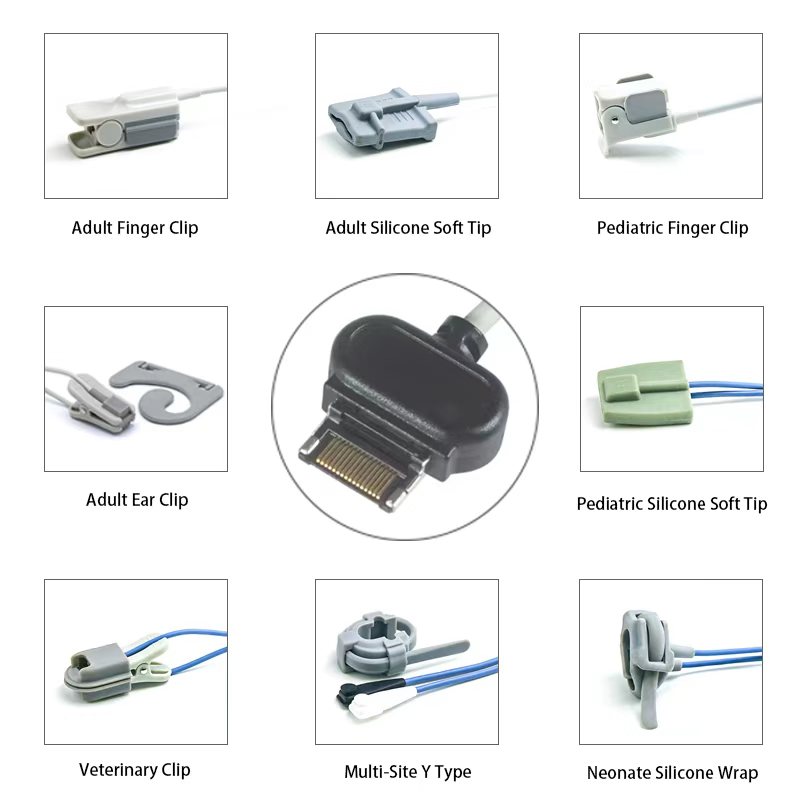 These are SpO2 sensors reusable with 16 pin male connector, high-quality, durable, designed to provide reliable and accurate blood oxygen saturation (SpO2) and pulse rate monitoring, which are suitable for patients like adult, pediatric, neonates.