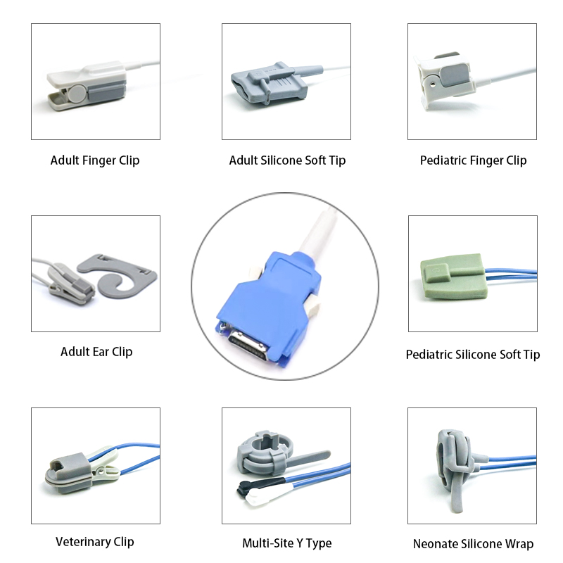 These are SpO2 sensors reusable with 20 pin connector, high-quality, durable, designed to provide reliable and accurate blood oxygen saturation (SpO2) and pulse rate monitoring, which are suitable for patients like adult, pediatric, neonates.