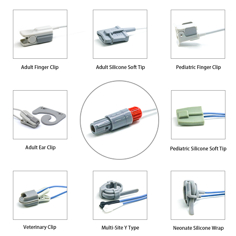 These are SpO2 sensors reusable with 5 pin male connector, high-quality, durable, designed to provide reliable and accurate blood oxygen saturation (SpO2) and pulse rate monitoring, which are suitable for patients like adult, pediatric, neonates.