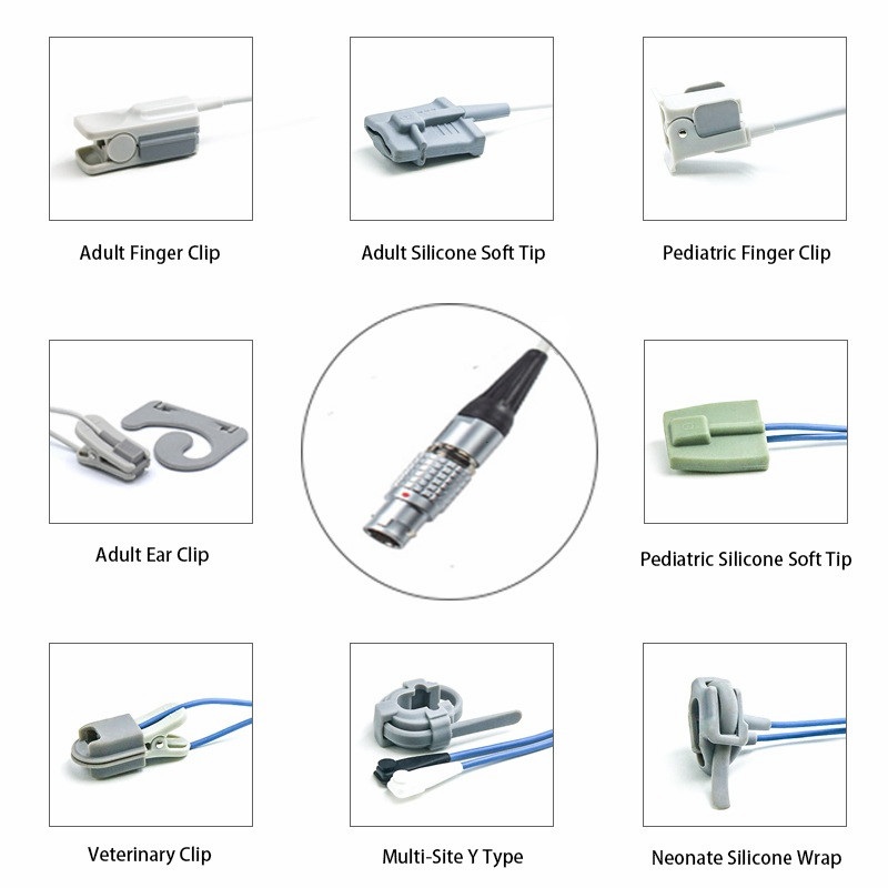 These are SpO2 sensors reusable with 7 pin male connector, high-quality, durable, designed to provide reliable and accurate blood oxygen saturation (SpO2) and pulse rate monitoring, which are suitable for patients like adult, pediatric, neonates.