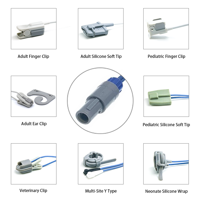 These are SpO2 sensors reusable with 7 pin male connector, high-quality, durable, designed to provide reliable and accurate blood oxygen saturation (SpO2) and pulse rate monitoring, which are suitable for patients like adult, pediatric, neonates.