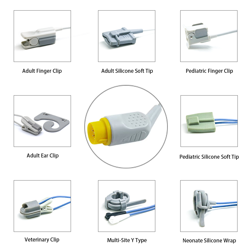 These are SpO2 sensors reusable with 8 pin male connector, high-quality, durable, designed to provide reliable and accurate blood oxygen saturation (SpO2) and pulse rate monitoring, which are suitable for patients like adult, pediatric, neonates.