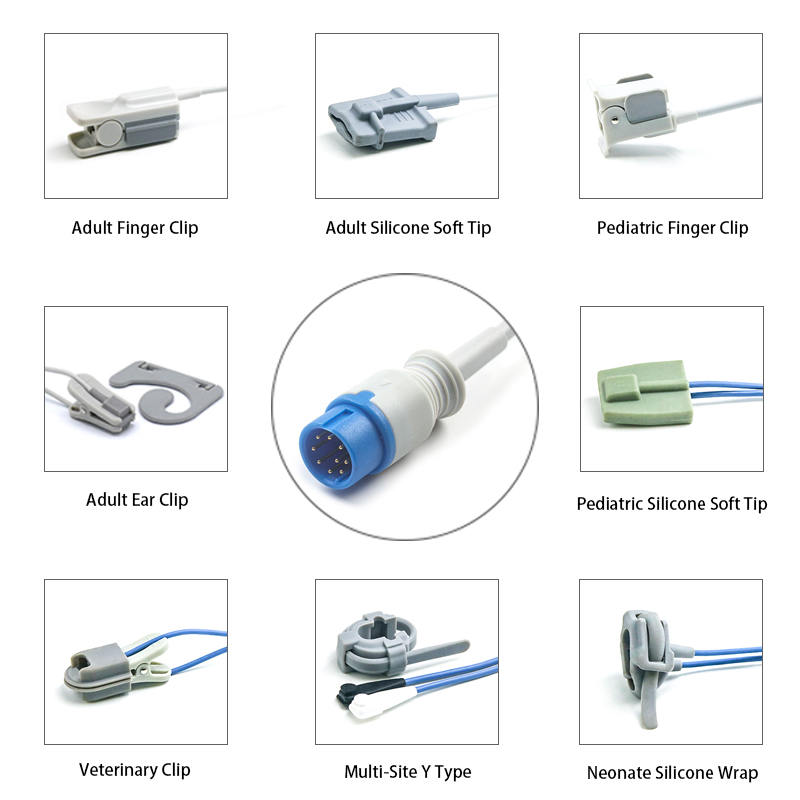 These are SpO2 sensors reusable with 9 pin male connector, high-quality, durable, designed to provide reliable and accurate blood oxygen saturation (SpO2) and pulse rate monitoring, which are suitable for patients like adult, pediatric, neonates.