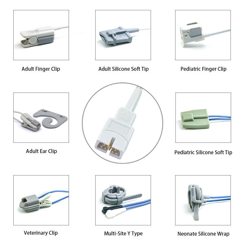 These are SpO2 sensors reusable with 9 pin male connector, high-quality, durable, designed to provide reliable and accurate blood oxygen saturation (SpO2) and pulse rate monitoring, which are suitable for patients like adult, pediatric, neonates.